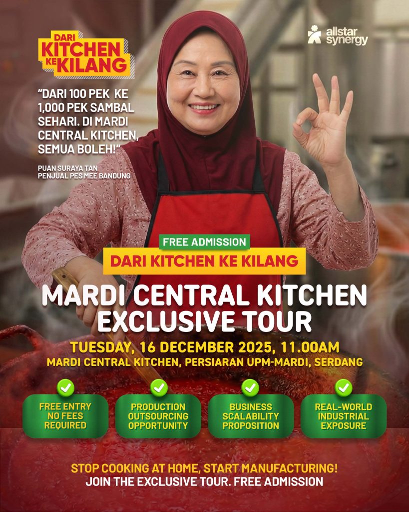 SERDANG, 4 Disember 2025 Satu laporan industri mendedahkan majoriti usahawan makanan dan minuman (F&B) mikro di Malaysia masih beroperasi secara manual sehingga menjejaskan kapasiti pertumbuhan jangka panjang. Menyedari keperluan mendesak ini, Allstars Synergize menganjurkan program eksklusif “Dari Kitchen ke Kilang” secara percuma pada 16 Disember 2025 di MARDI Central Kitchen, MARDI Serdang, dengan menampilkan pakar […]
