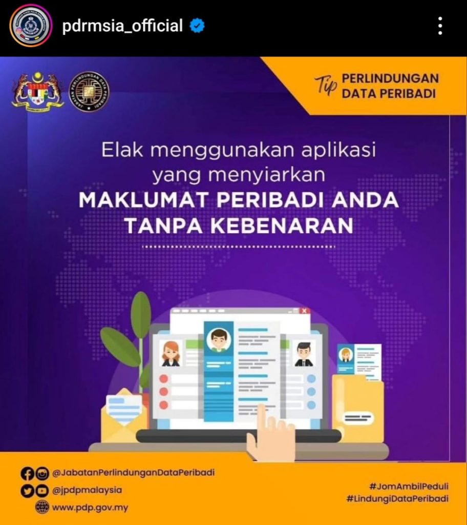 Kuala Lumpur, 1 Januari 2024, 4.00 petang -ELAKKAN mengguna aplikasi yang menyiarkan MAKLUMAT PERIBADI ANDA tanpa kebenaran agar dapat mengelak dari disalahguna oleh pihak yang tidak bertanggungjawab. Orang ramai juga diingatkan agar tidak sekali-kali mendedahkan maklumat peribadi mereka di media sosial atau di aplikasi lain. Kebanyakan pengguna sering cuai dengan memuatnaik data peribadi mereka secara […]